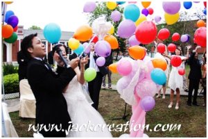 禮成之後,他們有個別開生面的放輕氣球儀式。