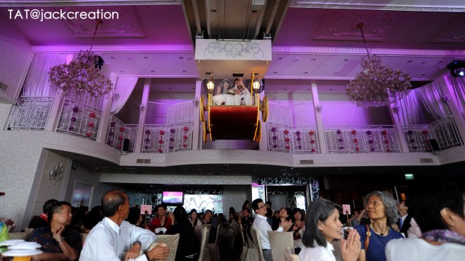 特別的進場方式,新人乘飛船從上而下,到達台上。接受大家的熱烈掌聲。