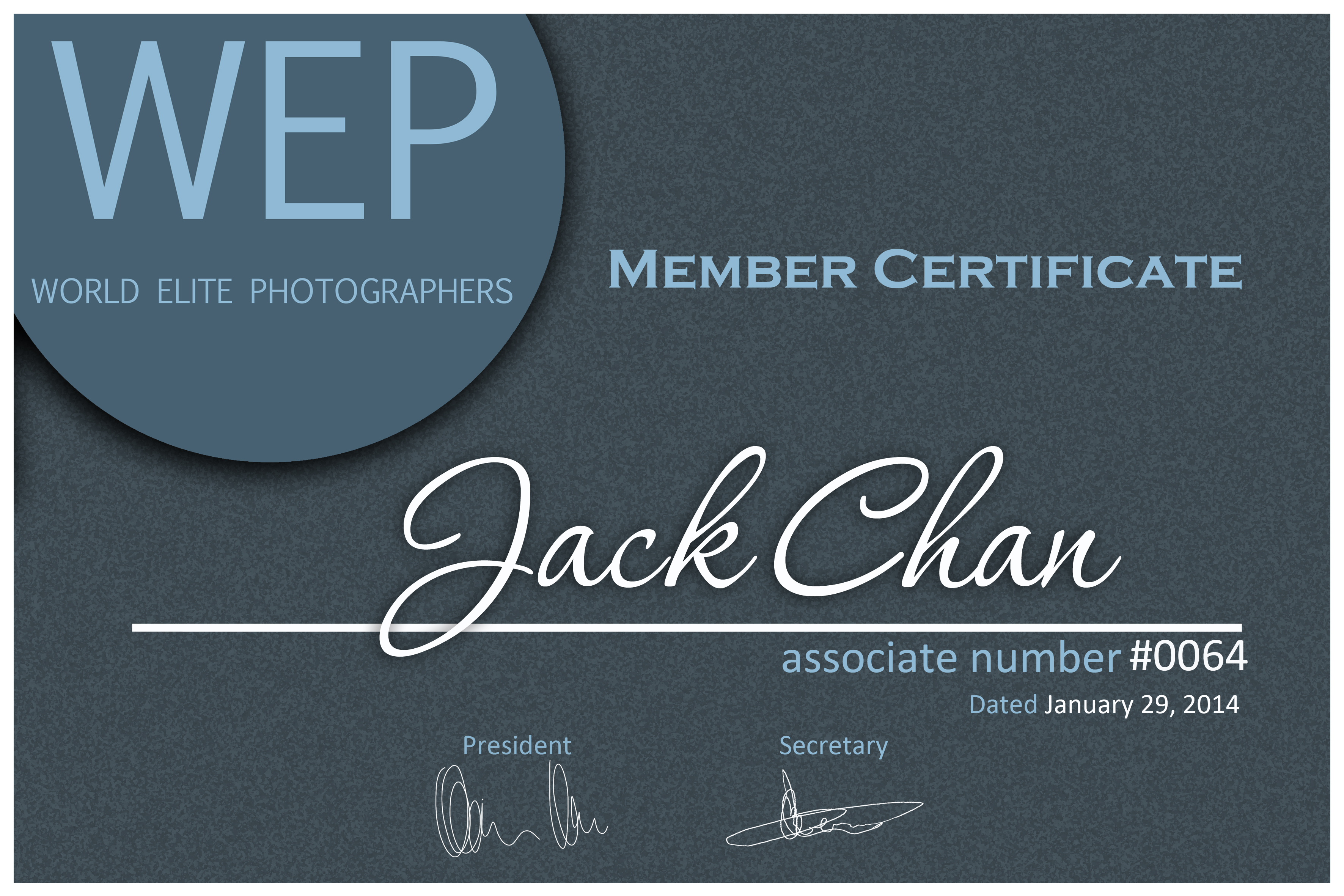 蛇年最後一個好消息,剛收到世界精英攝影師協會World Elite Photographers (WEP) 來函,成為中國第一位攝影師獲邀請為他們的會員。這對我來說是一個鼓勵和肯定,希望更多人喜歡我的作品,所以自己要不斷的努力和進步,做得更好。